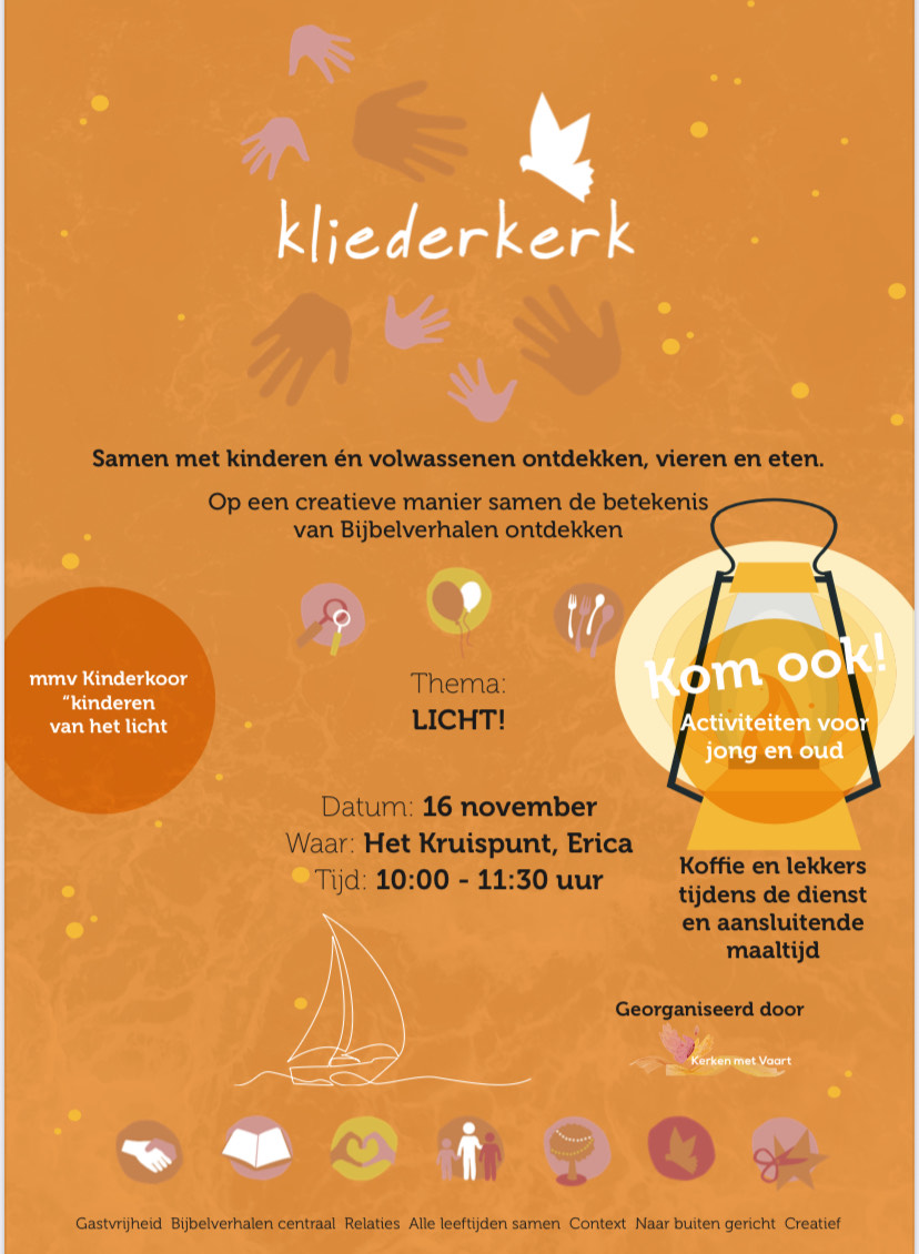 Zondag 2 februari – een zangavond van Kerken met Vaart In de winter zijn de dagen kort, het licht is schaars – maar juist in deze tijd kunnen we elkaar bemoedigen met muziek. Daarom nodigt Kerken met Vaart iedereen van harte uit voor de zangavond “Zingen tegen het donker.” | ||